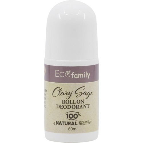 Introducing EcoFamily’s Deluxe Range Clary Sage Roll-on Deodorant, a blend of nature's finest, presented in a 60mL bottle for your daily comfort and confidence.