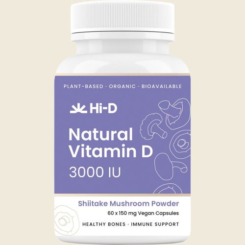 Hi-D Natural Vitamin D 3000 IU - 60 Capsules is a whole food, plant based Vitamin D made from 100% Organic Shiitake Mushrooms.