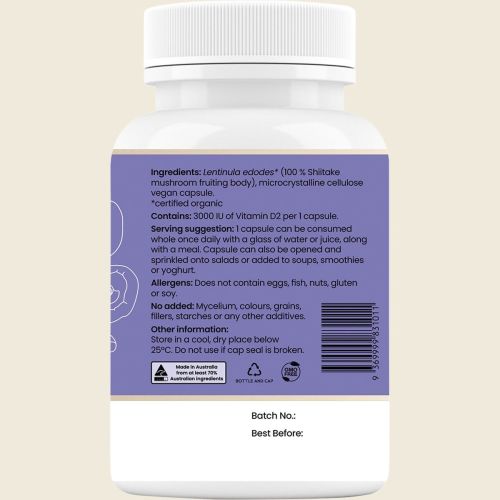 75mcg Vitamin D2 (ergocalciferol from Shiitake)