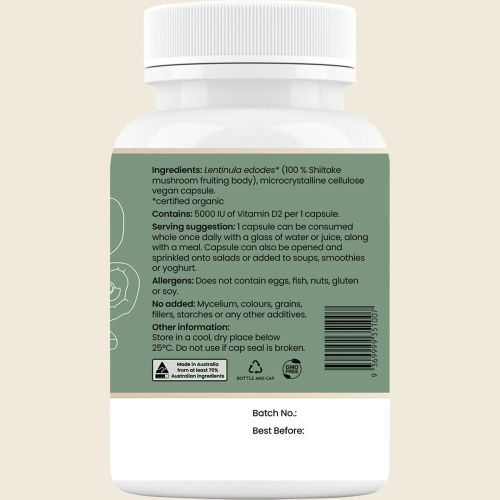 A whole food, plant based Mushroom Vitamin D made from Organic Shiitake Mushrooms,