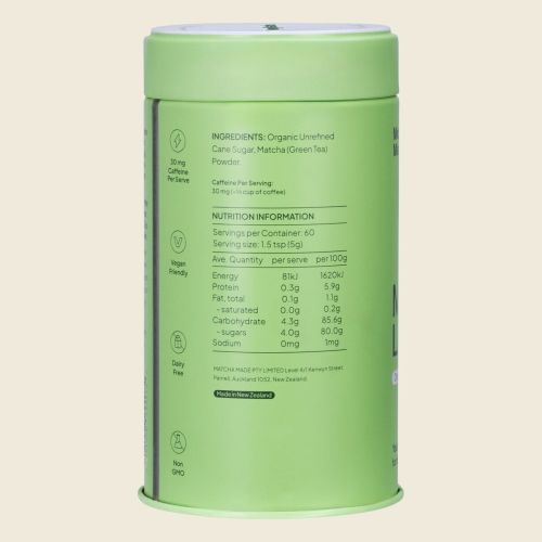 Organic Unrefined Cane Sugar, Organic Matcha (Green Tea) Powder.