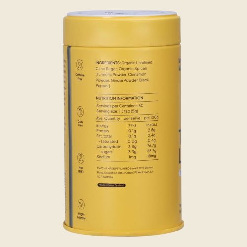Organic Unrefined Cane Sugar, Organic Spice Powders [Turmeric, Cinnamon, Ginger, Black Pepper].