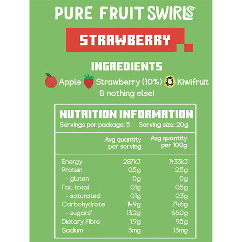 Made from 100% fruit and nothing else, our Pure Fruit Swirls take the stress out of snack time. No added sugar, no artificial flavours – just soft, tasty twists of Strawberry, Raspberry or Mango fruit that kids love and grown-ups quietly steal.