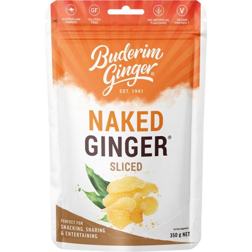 Buderim Naked Ginger Sliced takes on its famous golden hue after being infused in a cane sugar syrup for up to 12 days. Armed only with its velvety, zesty flavour.