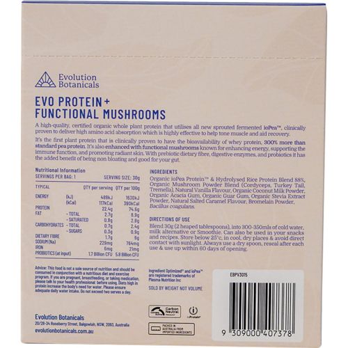 Evolution Botanicals EVO+ Protein Functional Mushrooms Creamy Vanilla 15 x 30g