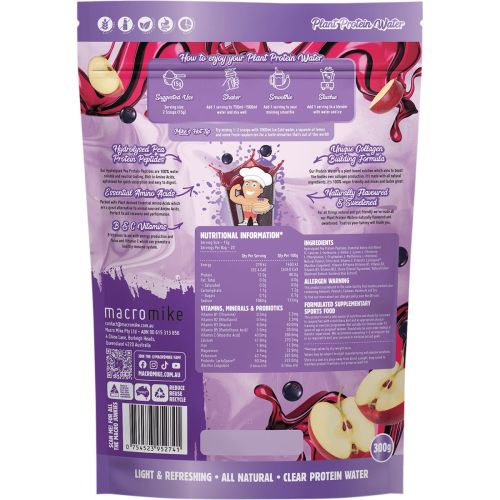 Macro Mike Plant Protein Water Apple Blackcurrant 300g