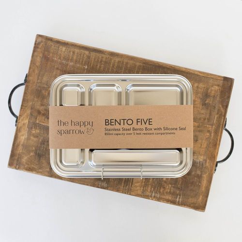 We looked at a LOT of bento boxes before deciding to make this one for our in house brand, The Happy Sparrow. There are many reasons why we love the new BENTO FIVE because it fixes problems we have seen with other stainless steel lunch boxes and bento boxes on the market.