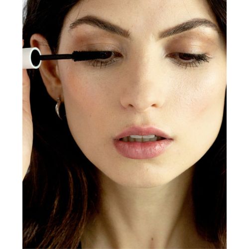 Dip wand into container, wipe excess mascara on the rim and apply in upward strokes to the underside of your lashes
