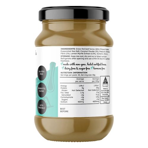Grass Fed Bone Broth Concentrate - 42 serves per jar. Flavoured with Coconut Powder, Lemon Myrtle and Turmeric.