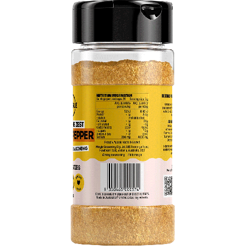 Onion, Pepper (20%), Garlic, Vitamin C, Pink Himalayan Salt, Sumac, Capsicum, Citrus Peel (2%), Turmeric, Parsley, Olive Oil, Natural Orange & Lemon Oil, Paprika.