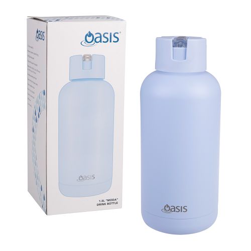 The Oasis Moda Triple Insulated Stainless Steel Water Bottle is a unique drink bottle when it stands up against most others in our store. It provides up to 18 hours cold insulation through triple insulation - 2 layers of stainless steel with a vacuum in between them, with a layer of copper outside the inner layer, which sits in the vacuum. For those with a sensitivity to the taste of nickel, and just for anyone who gets a bit of a metallic taste from drinking from stainless steel (it happens more with cheaper brands that aren't polished properly on the inside), the Moda bottle has a full ceramic lining, so there's zero metallic taste. The Moda bottle comes in 2 different sizes (1 litre and 1.5 litres) and has a well designed, easy to use, straw lid which means you don't have to tip the bottle up to drink. The wide mouth top means it's easy to get ice cubes in the bottle to instantly chill your drinking water as you fill the bottle to get the most out of your insulation. The straw can easily be opened and closed with one hand and there's a stainless steel carry loop built in to the handle.