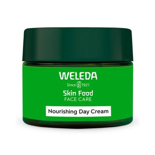 Weleda Skin Food Day Cream is packed in a glass jar with a plastic lid.