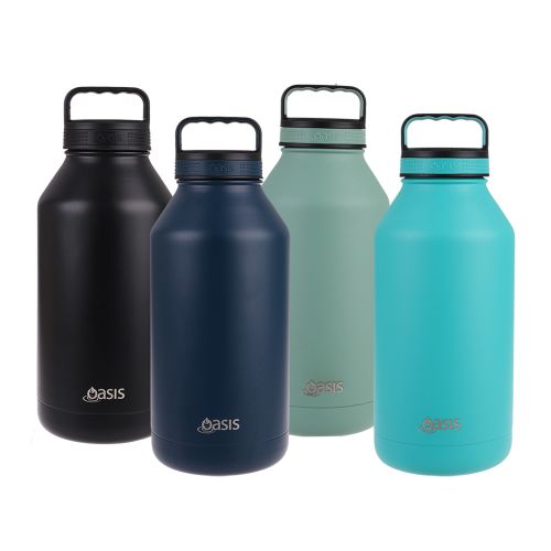 The Oasis drink bottle range is built on quality and affordability, with an extensive range of insulated water bottle sizes and designs from 400ml kids bottles through to a 3.8 litre bottle perfect for the work site or a picnic.